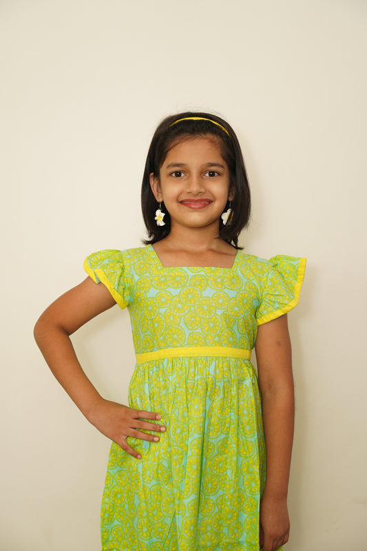 GLK031 - Yellow floral bara bandi style girls' kurti