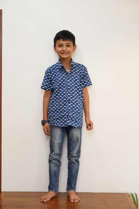 Blue whale print shirt