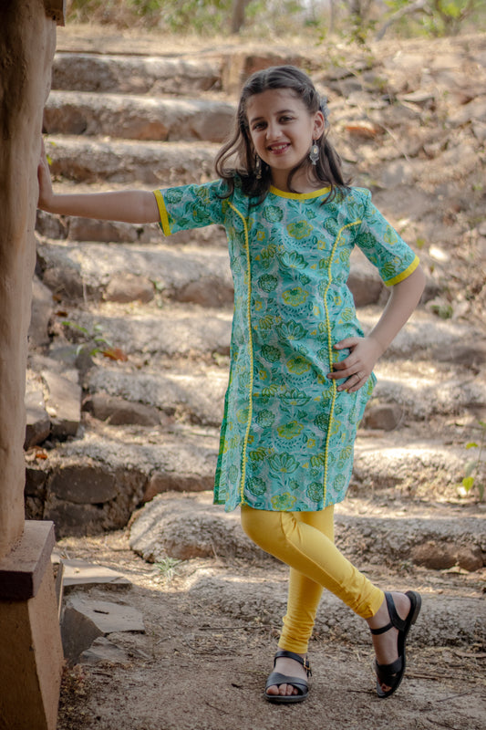 Sea green floral kurti for girls
