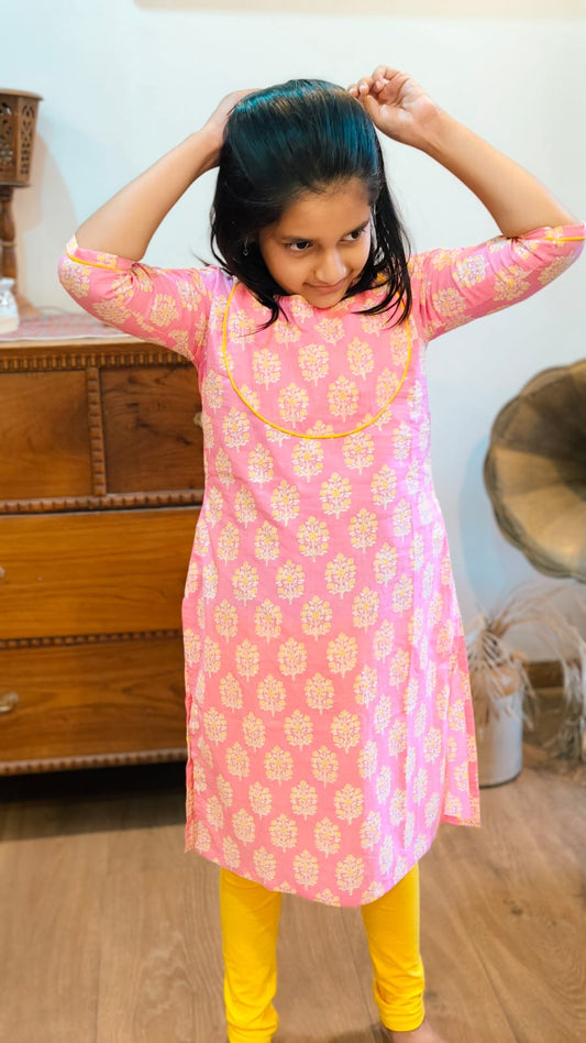 GLK035- Pink floral Jaipur print kurta for kids