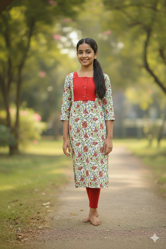 Pure cotton floral kurti for girls