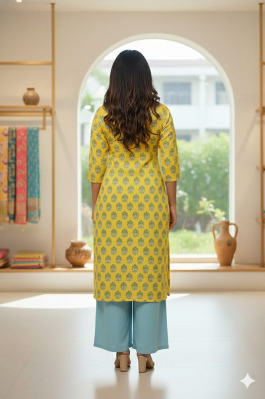 WLK007 - Yellow Floral Cotton Kurti